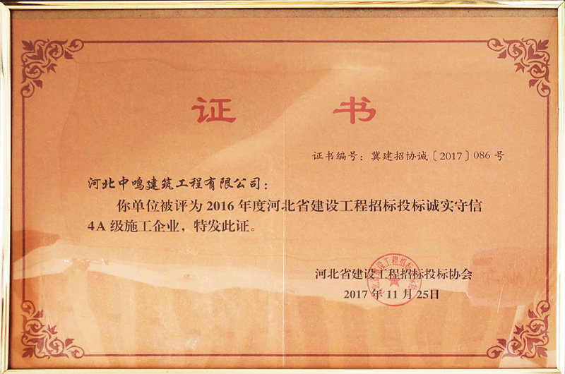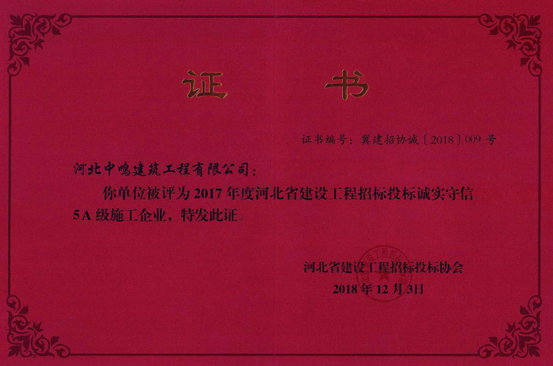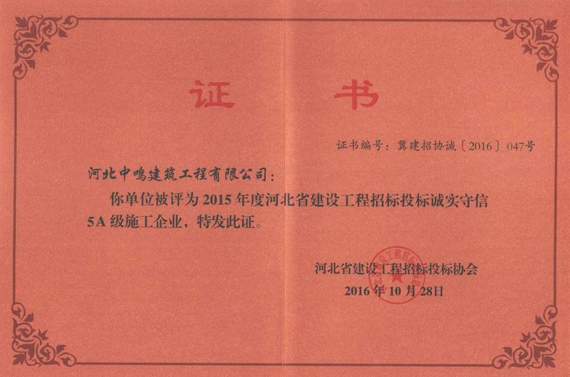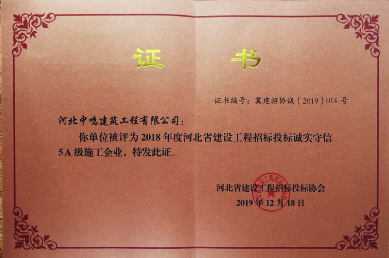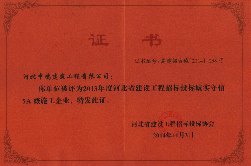 2014年招投标诚实守信5A证书
